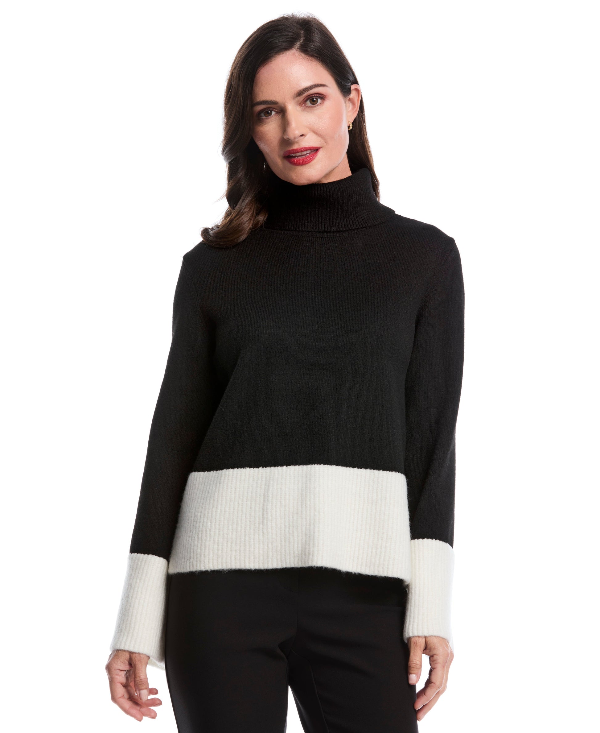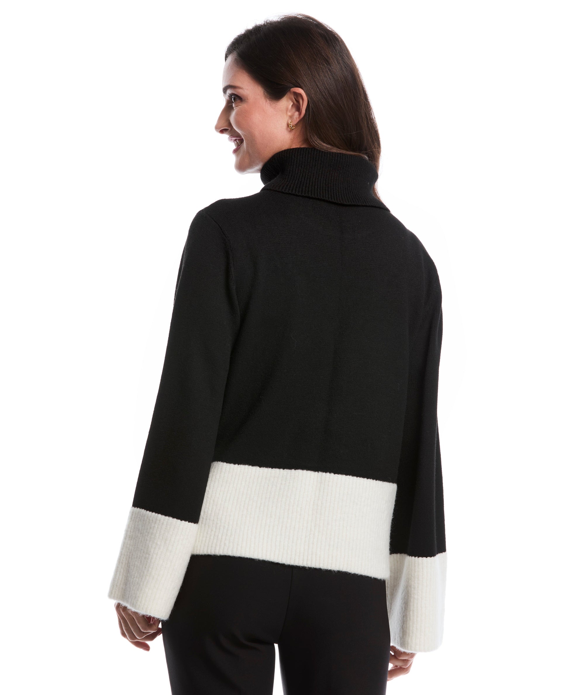 Color Block Trim Turtleneck Sweater