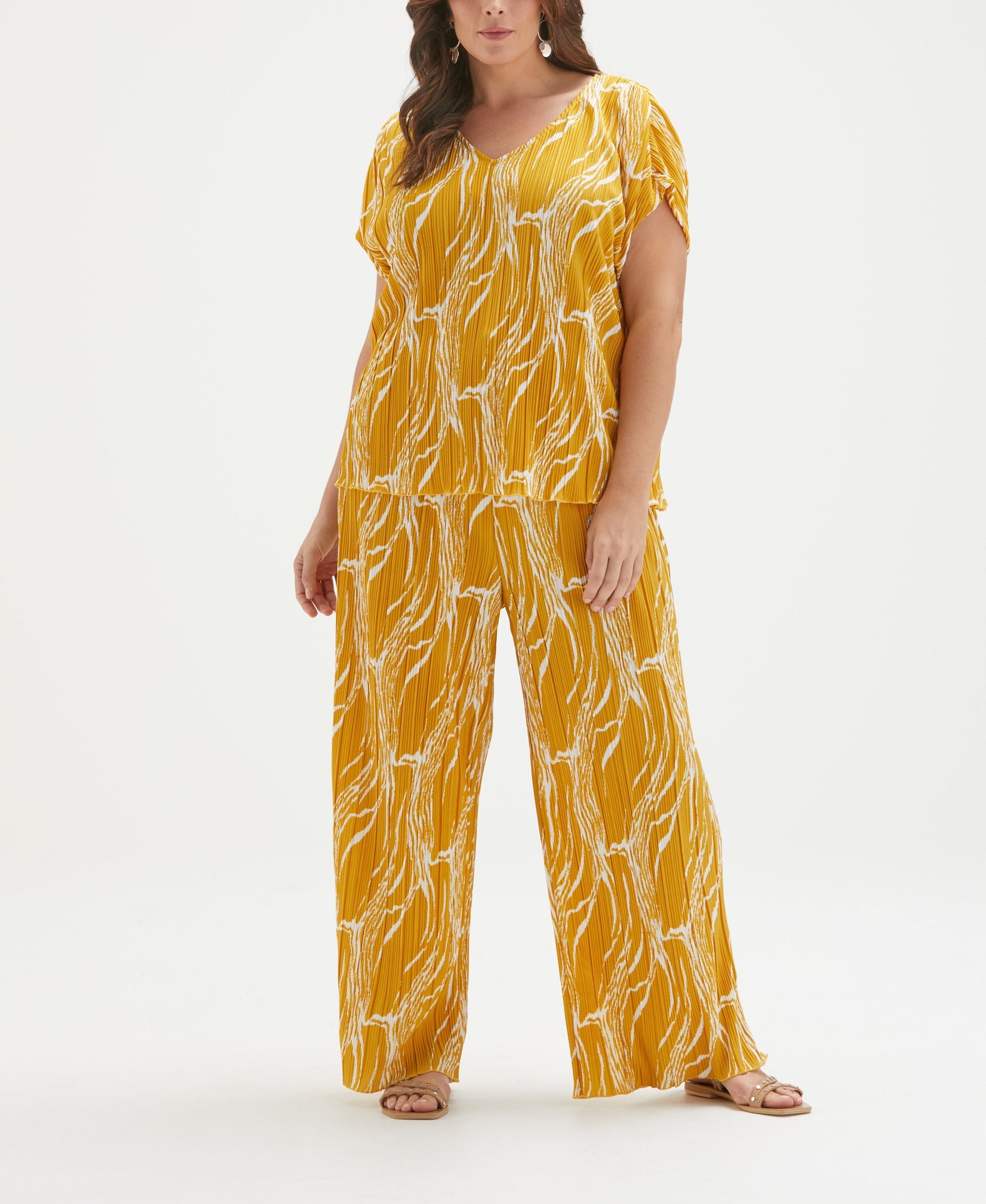 Plus Size Ripple Print V-Neck Plisse Top